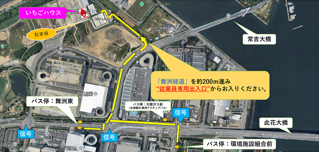 (1) 環境施設組合前バス停・舞洲東バス停から徒歩でお越しの方