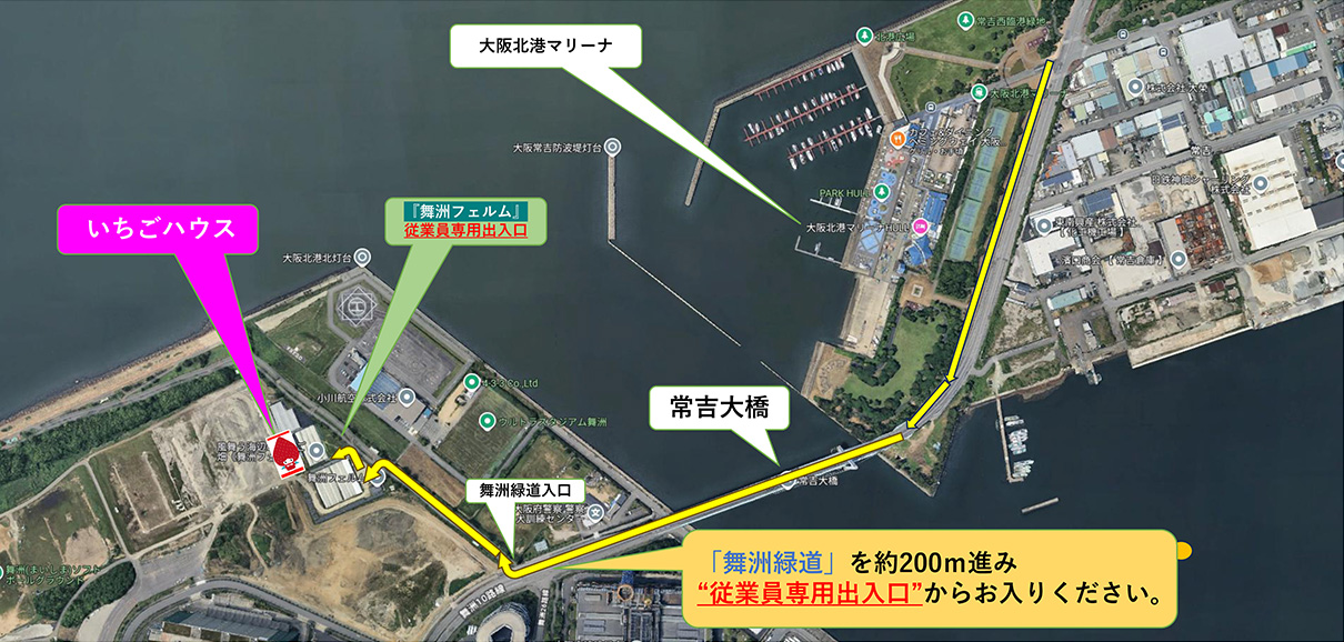 (2) 大阪北港ヨットハーバー方面(常吉大橋)から徒歩でお越しの方